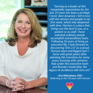After 20 years of executive leadership with Horizon, CEO Erin DiGirolamo will retire in July 2026. Brandy Vandermark-Murray will succeed her. Read the full press release here.